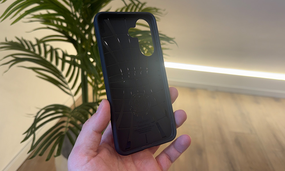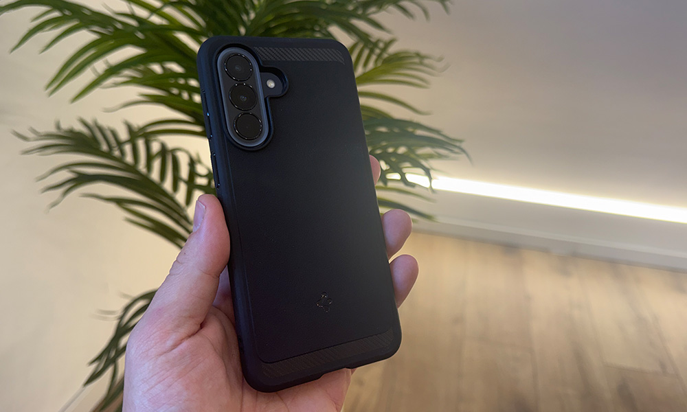 Besonders hervorzuheben ist der sehr gute Grip, wodurch das Smartphone deutlich sicherer in der Hand liegt. Auch die Tasten lassen sich angenehm und präzise bedienen. Positiv ist zudem, dass die Hülle nicht mehr so klobig ausfällt wie ältere Spigen-Modelle und weiterhin mit großen Panzergläsern kompatibel bleibt.